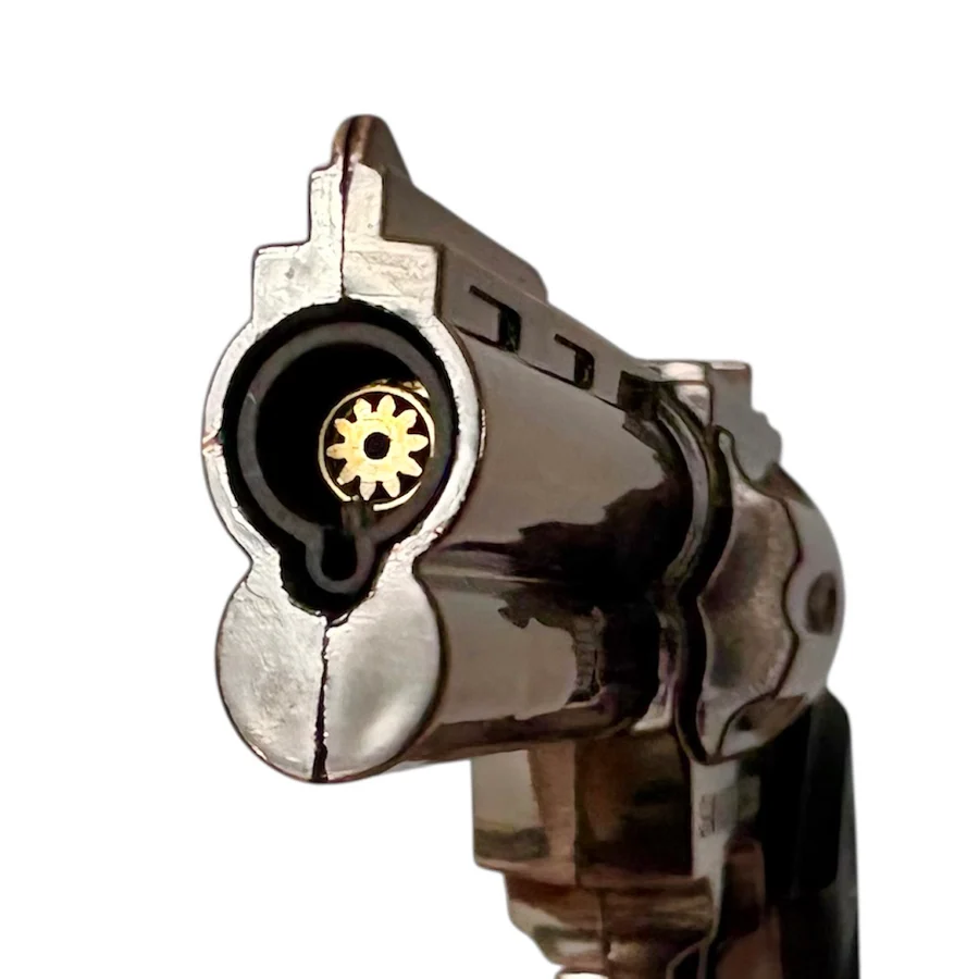 • The cylinder has faux fluting details, resembling a real revolver.